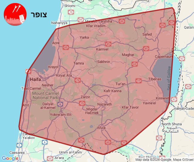 - 22:11:41 – Another ballistic missile toward northern Israel (GeoPWatch).