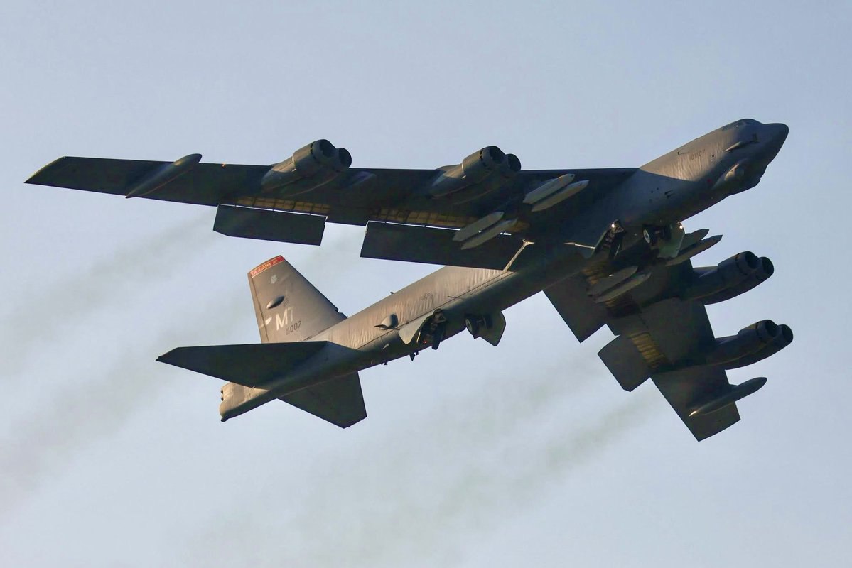 - A B‑52H bomber departing England with JASSM cruise missiles for a planned strike on Iran. (source)