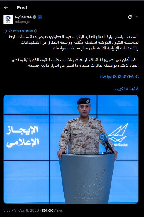 Iran responded to perceived provocations with a series of missile and drone attacks. At 10:27 UTC, Iranian forces launched missiles and drones at the United Arab Emirates (UAE) and Kuwait following an alleged strike on Iranian oil facilities on Siri Island (intelslava). The Kuwaiti Ministry of Defence confirmed that Iranian drones targeted three power stations and water‑distillation plants, causing material damage (BellumActaNews). The Kuwaiti Army reported intercepting 28 Iranian drones since the morning (BellumActaNews).