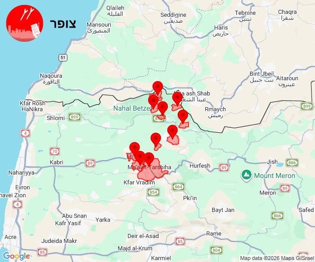 The rocket launch began in the early morning hours and continued throughout the day, with multiple alerts issued by civilian warning networks such as RocketAlert.live. Specific confrontation lines included the communities of Ben Ami, Evron, Nahariya, Regba, Mazra'a, and the Upper Galilee towns of Shomera and Fassuta. By 16:51 UTC, RocketAlert recorded an alert covering Ben Ami, Evron, and Nahariya, while a later alert at 17:22 UTC added Misgav Am and Metulla to the list of threatened locations.
