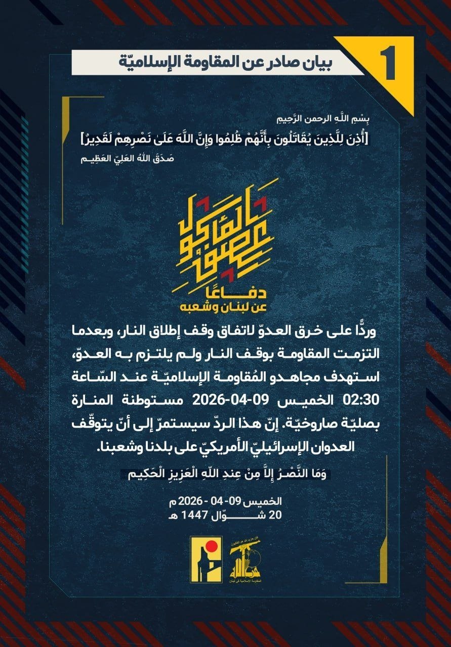 Later, at 01:44 GMT, a second barrage was confirmed in Manara, this time reported by the intelligence outlet rnintel (source). The group claimed the rockets represented the first Hezbollah attack on Israel since a cease‑fire was announced the previous night, underscoring the rapid escalation following the Israeli strikes.