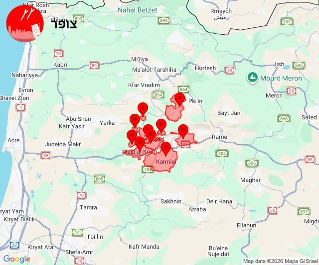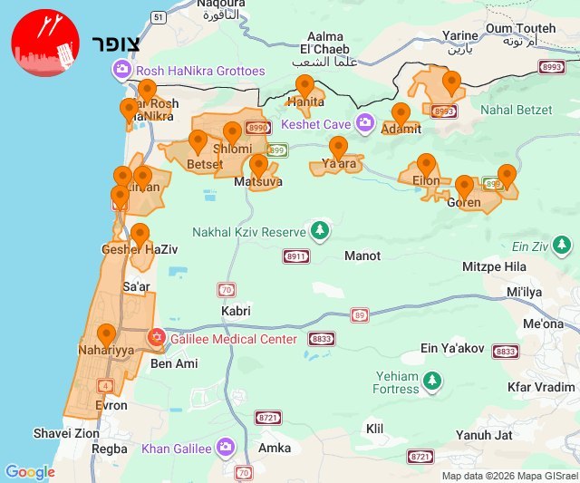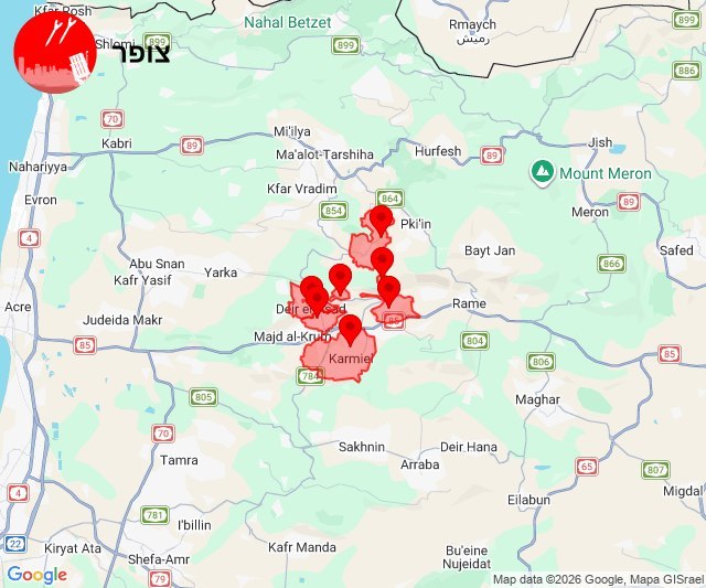 - 15:52:52 – Carmiel: Sirens sounded after rockets fired from Lebanon. Source: idkunim_il.
