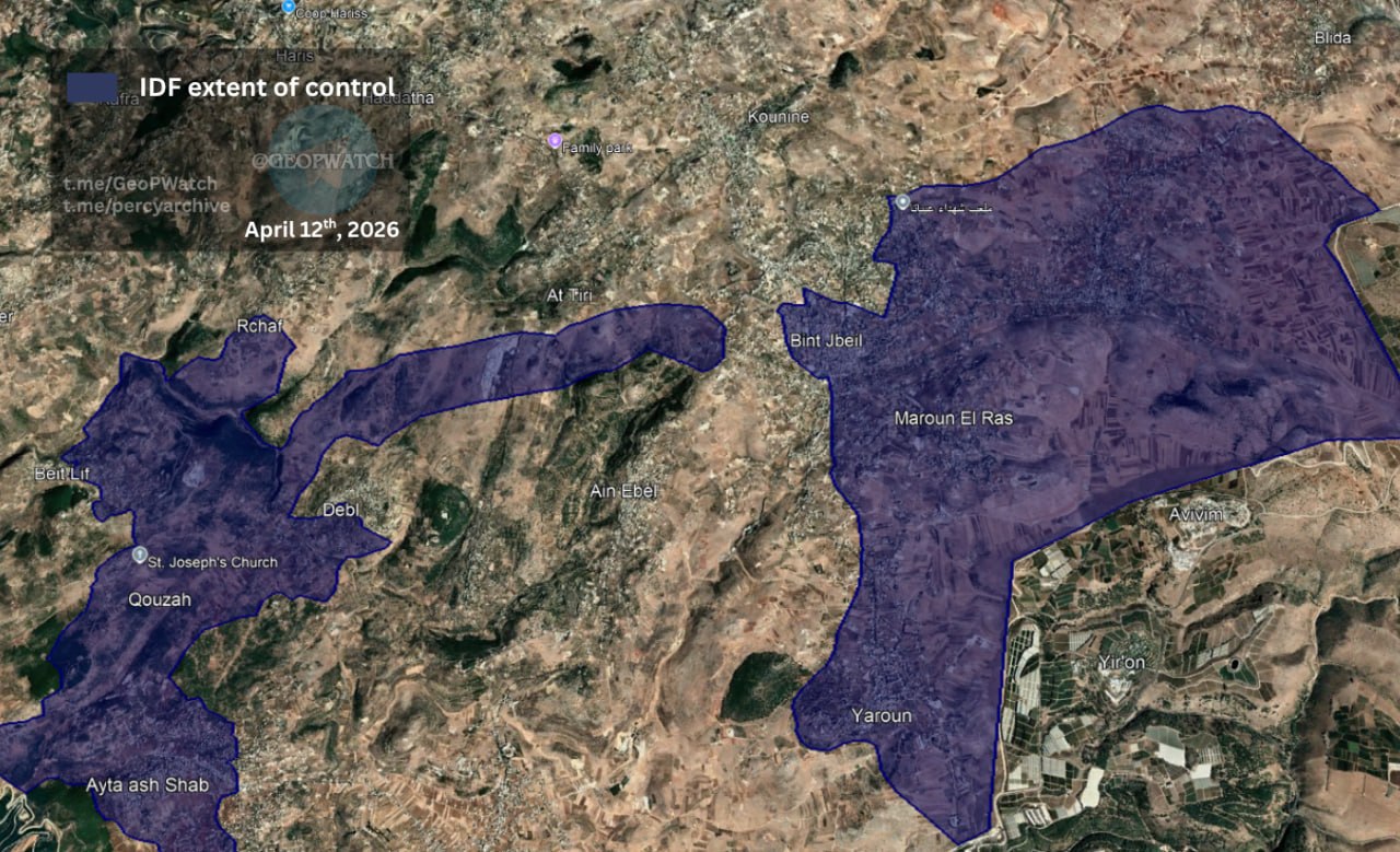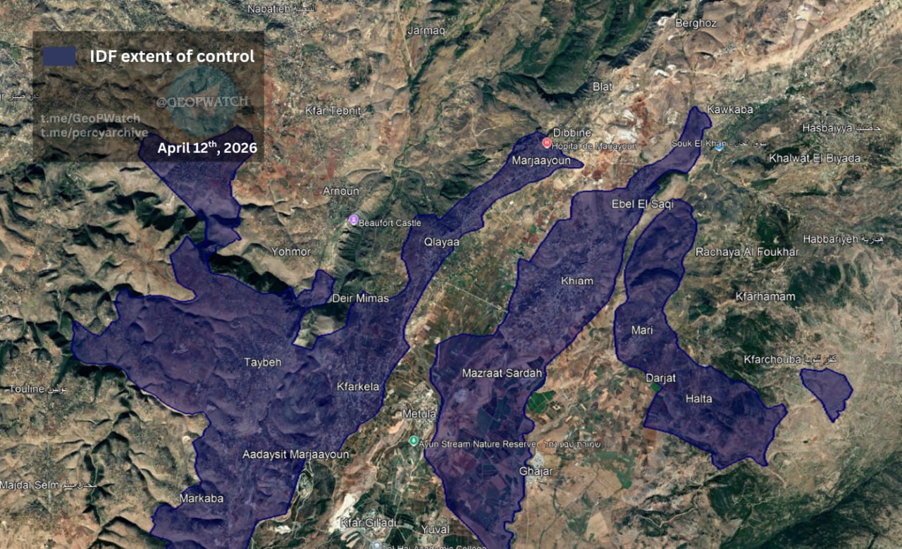 Throughout the afternoon, Hezbollah launched multiple rockets at Israeli positions across southern Lebanon (14:41), while the IDF reported continued ground movement, including the capture of Khiam, crossing of the Litani River, and a siege of Bint Jbeil as part of a broader northward push (14:26). These movements were captured in a series of photographs posted by GeoPWatch.