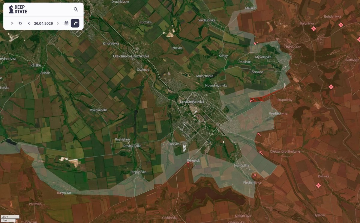 Over the preceding five days, Russian troops have made incremental gains near Kostyantynivka and adjacent settlements such as Kupyansk, Hryshyne, and Rodynske. Updated frontline maps released by the monitoring channel indicate a forward movement of up to 2‑3 km, consolidating Russian positions in the Donetsk Oblast. The advance was achieved without reported direct engagements, suggesting a combination of artillery pressure and maneuver warfare.