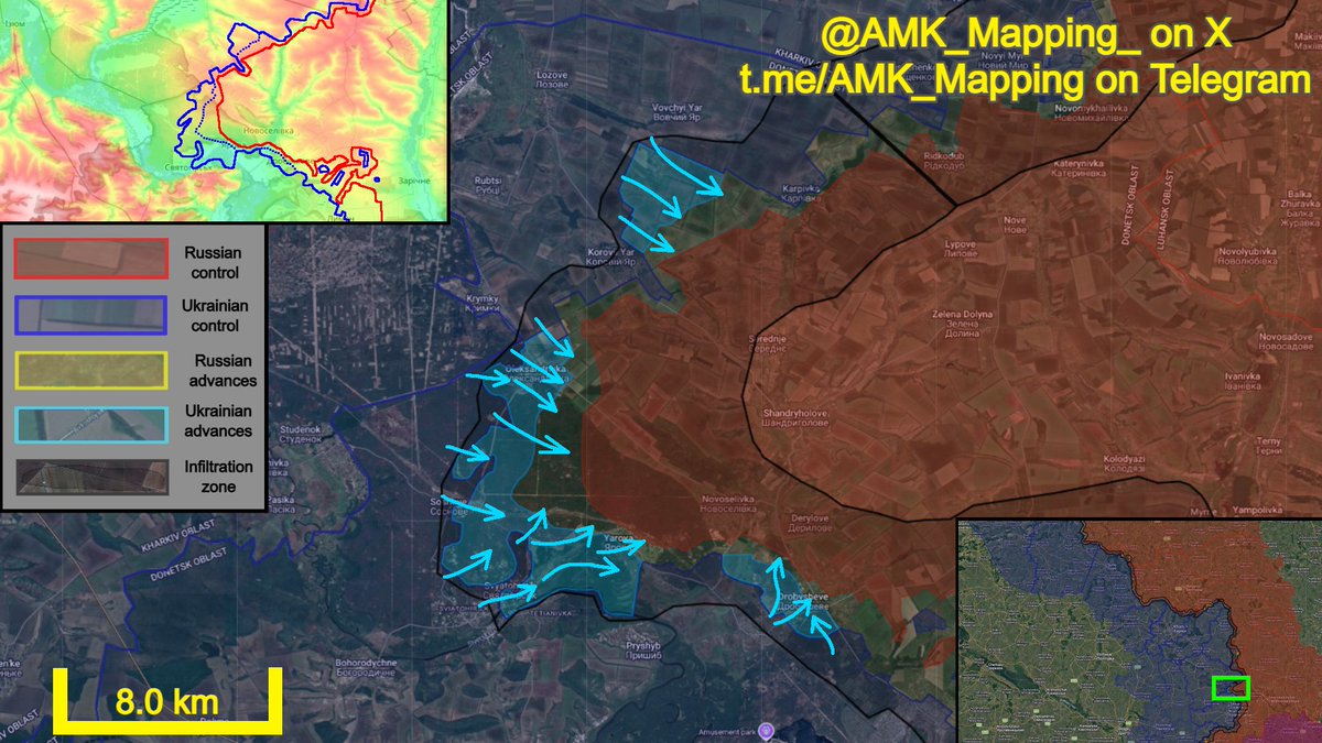 Multiple ground‑movement reports indicate shifting frontlines. Russian troops advanced southwest of Hulyaipole and north of Myrne in Zaporizhzhia Oblast (08:16:05), while Ukrainian forces reclaimed positions east of Bohuslavka in Kharkiv Oblast (06:30:25). Concurrently, Ukrainian units conducted clearing operations around Lyman, Borova, and Svyatohirsk in Donetsk Oblast to relieve pressure on the strategic city of Lyman (06:55:34). These movements reflect ongoing attritional battles across the front.
