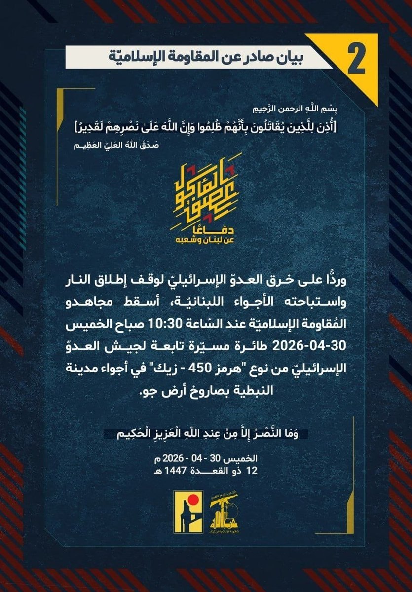 "Israeli attacks in southern Lebanon have killed nine people despite ‘ceasefire'" – Al Jazeera, 30 April 2026